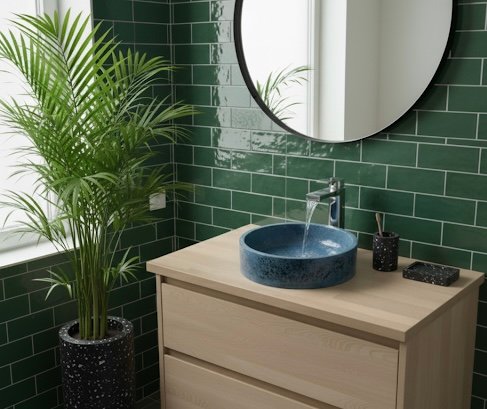 Bacha de diseño único en color azul vibrante que fusiona la tradición artesanal con la vanguardia contemporánea